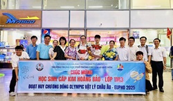Đoàn trường - 19/06/2025. Tối ngày 19/6/2025, trong không khí hân hoan và xúc động, đại diện Ban Giám hiệu, các thầy cô giáo cùng gia đình đã có mặt tại sân bay Đà Nẵng để chào đón em Cáp Kim Hoàng Bảo sau hành trình chinh phục tri thức tại đấu trường châu lục. Tấm Huy chương Đồng xuất sắc tại kỳ thi Olympic Vật lý Châu Âu (EuPhO) 2025 là minh chứng rực rỡ cho bản lĩnh và trí tuệ của học sinh Đà Nẵng, góp phần tô thắm thêm truyền thống hiếu học của nhà trường.
