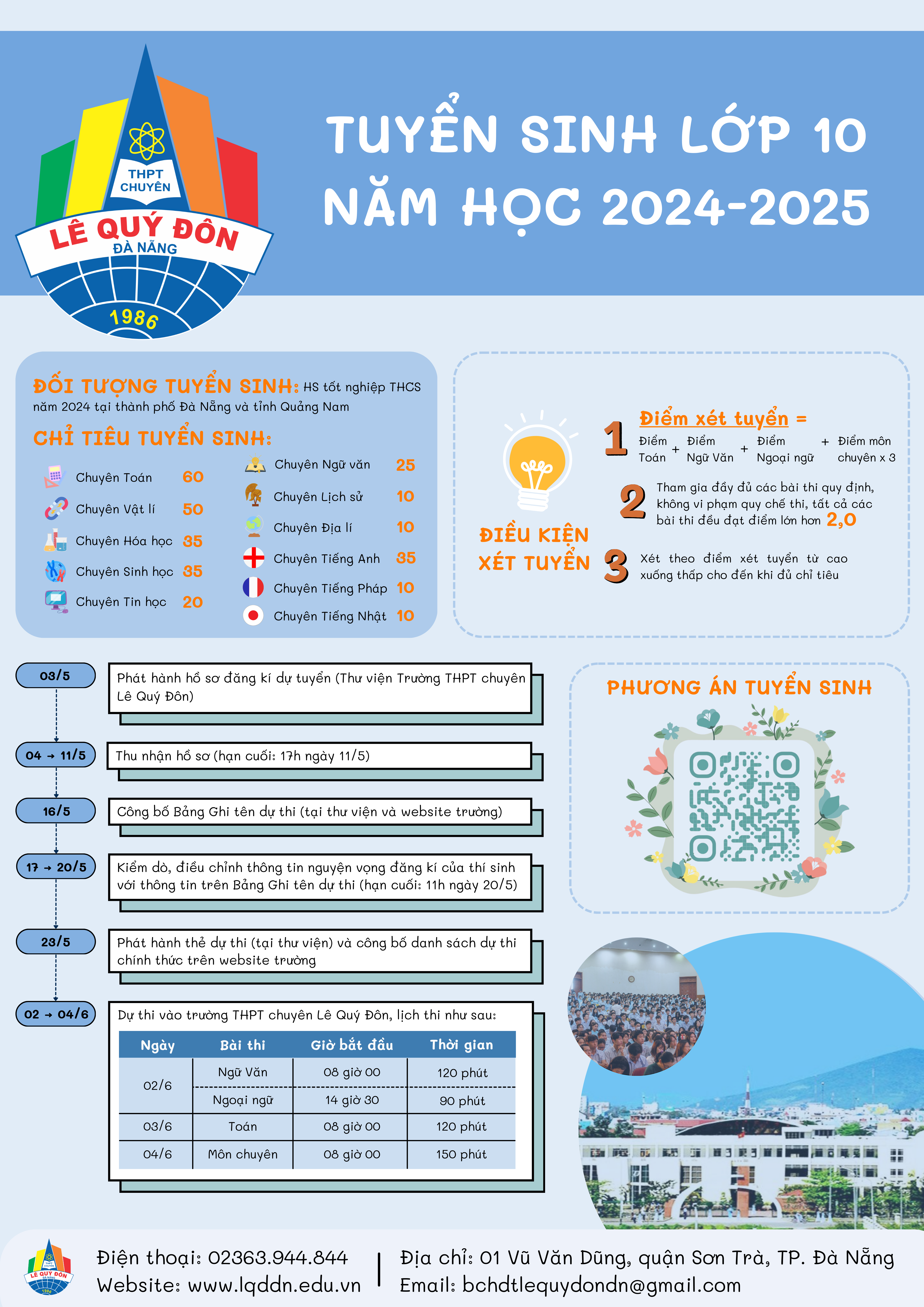 Thông báo về việc tuyển sinh vào Trường THPT chuyên Lê Quý Đôn - Đà Nẵng năm học 2024-2025